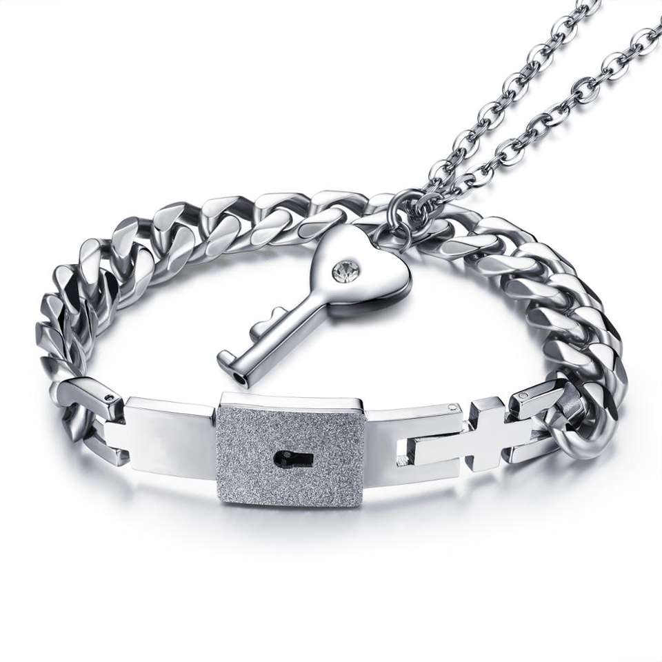Bracelet et Collier Cœur Verrouillable pour Lui et Elle, Bijoux de Couple en Acier Titane pour la Saint-Valentin
