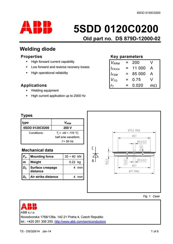 High forward current capability Low forward and reverse recovery losses High operational reliabilityDescription