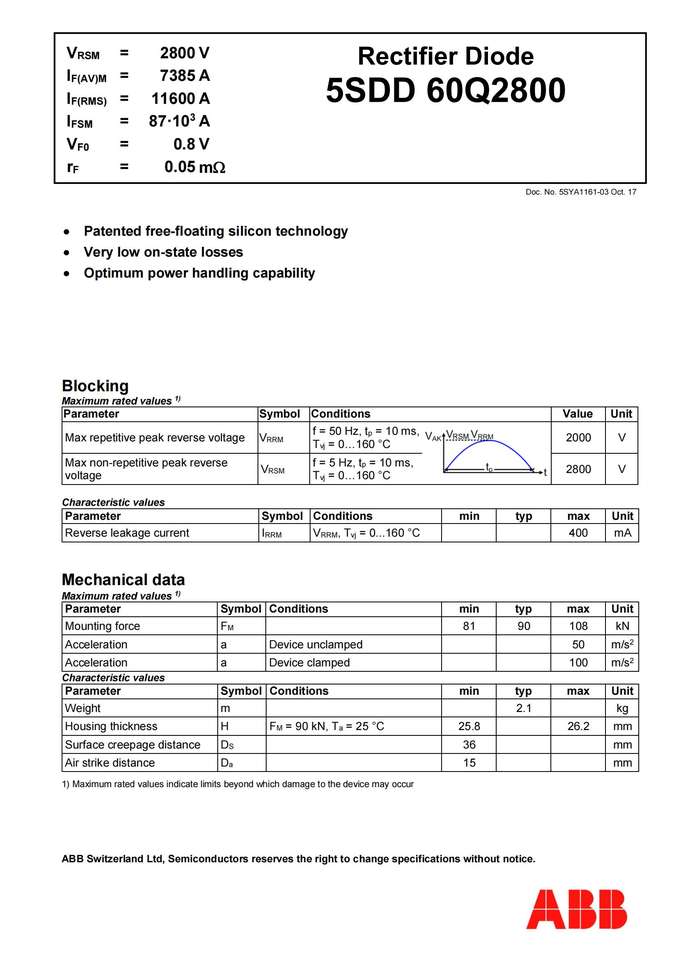 Patented free-floating silicon technology Very low on-state losses Optimum power handling capabilityDescription