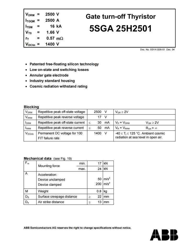 Patented free-floating silicon technology Low on-state and switching losses Annular gate electrode Industry standard housing Cosmic radiation withstand ratingDescription