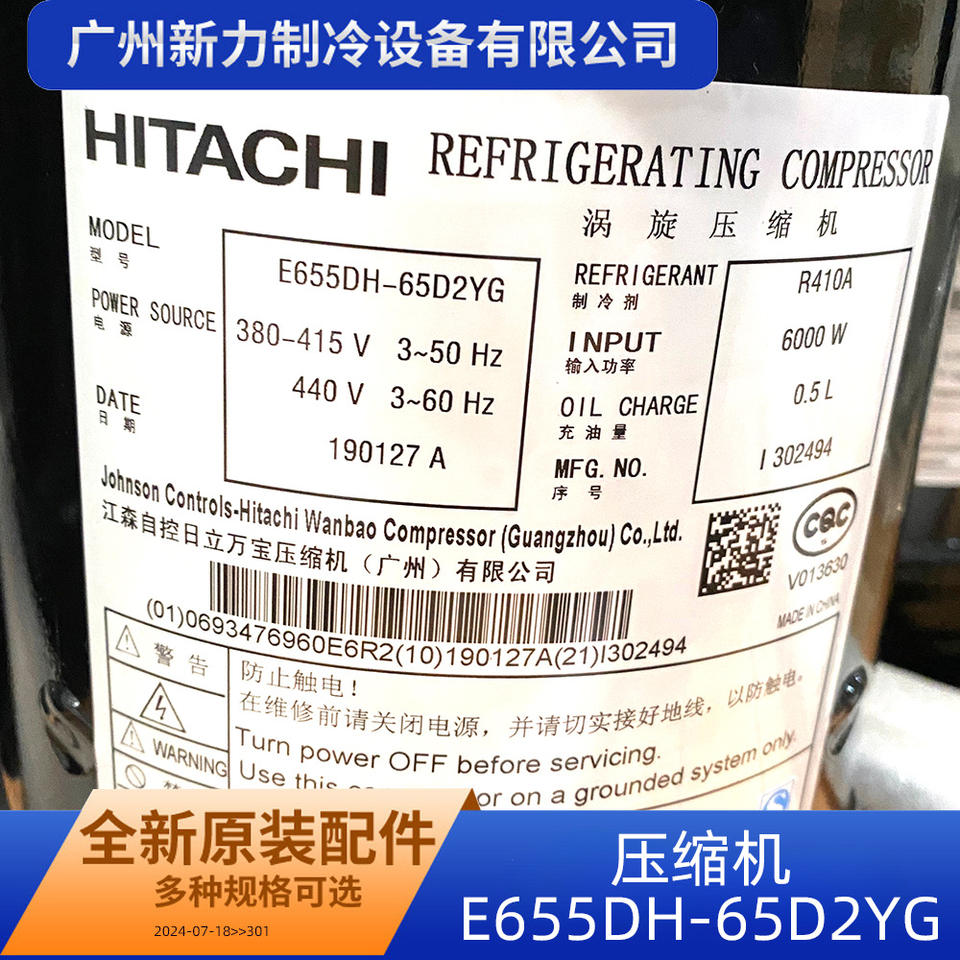 Compresseur frigorifique Hitachi E655DH-65D2YG 380-415V 6HP Scroll pour remplacement de climatisation centralisée