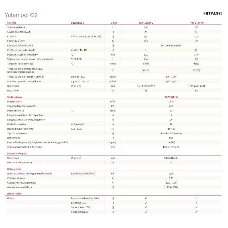 Chauffe-eau à pompe à chaleur Hitachi YUTAMPO 270 litres R32 A+ - Énergie renouvelable - Classe A+