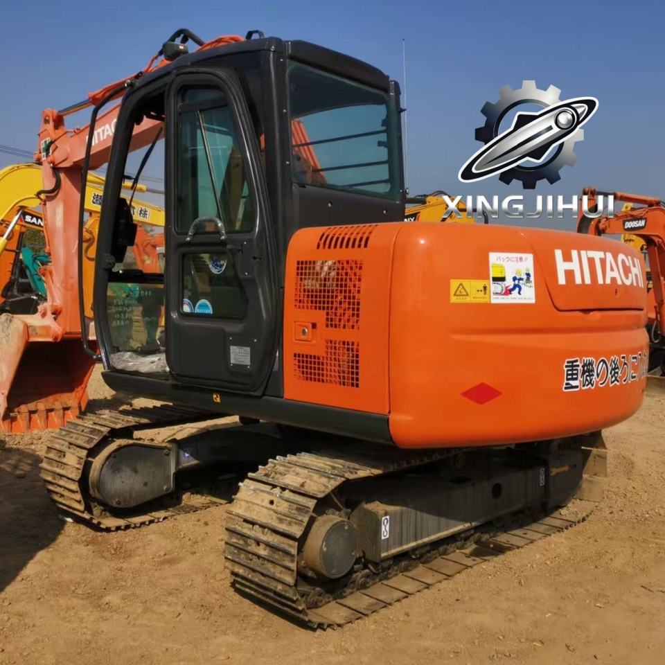 Mini-excavatrice Hitachi ZX70 d'occasion, marque japonaise, 7 tonnes, sur chenilles en caoutchouc, avec moteur Yanmar et groupe motopropulseur.