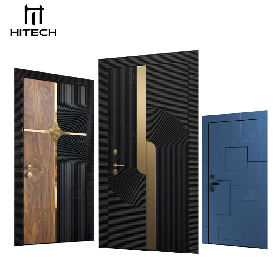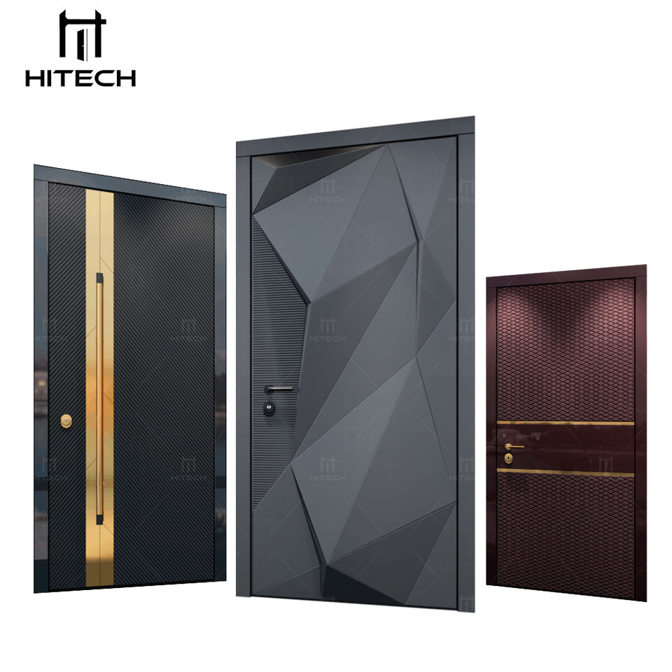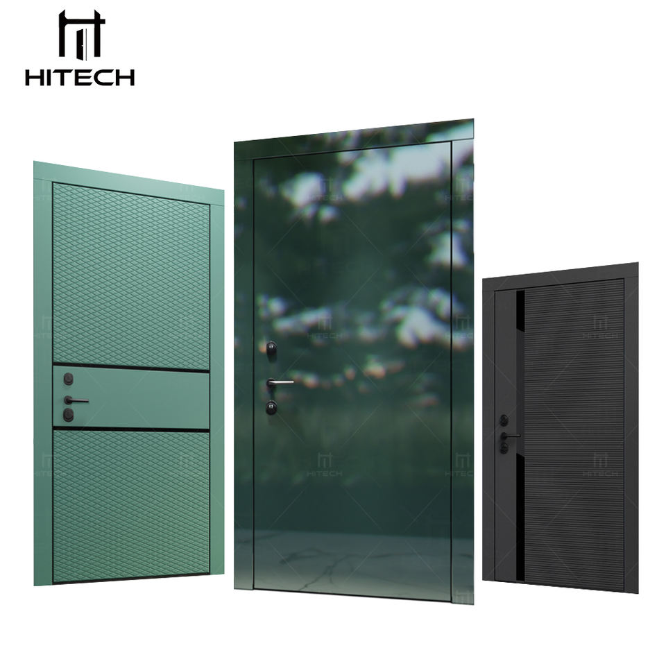 Hitech-US Porte d'entrée au design simple Portes extérieures modernes blanches à haute brillance Portes d'entrée résidentielles en acier inoxydable en acier