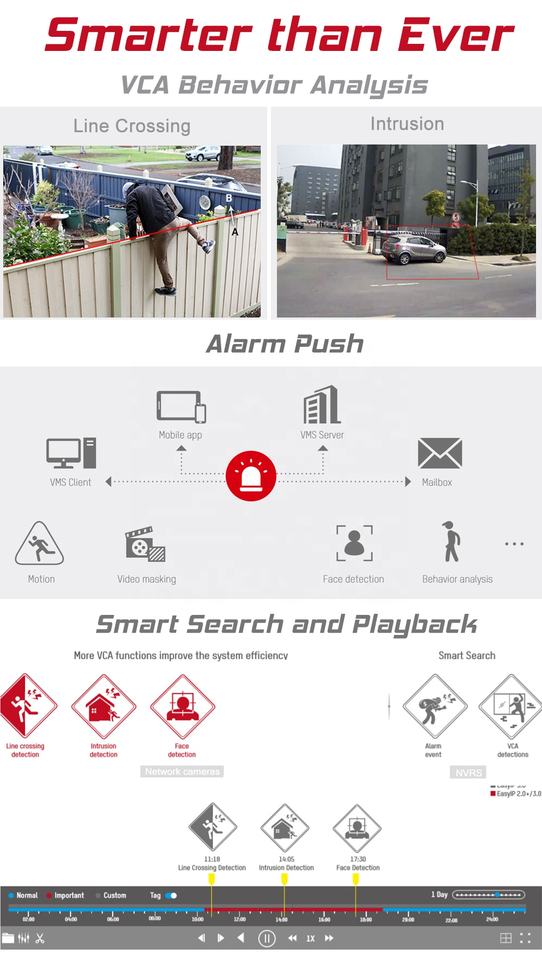 Smart features:Line crossing detection, intrusion detection, face detection