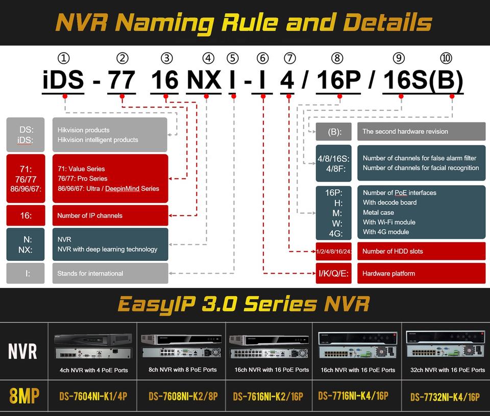 NVR:4ch 8ch 16ch 32ch, soutien jusqu'à 4K