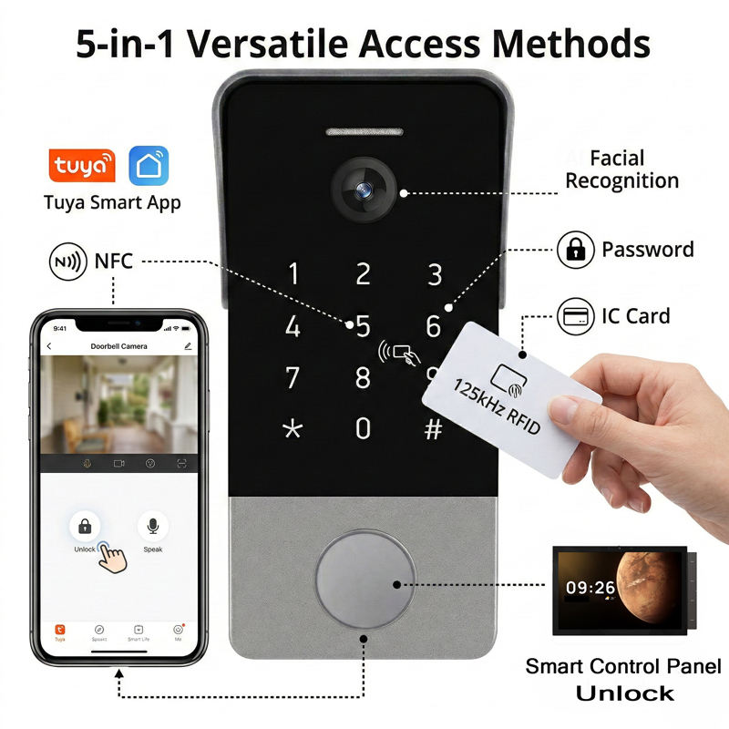 Sonnette de porte intelligente Hiwink pour iOS et Android, écran tactile, acier inoxydable, interphone vidéo WiFi extérieur, détection de mouvement