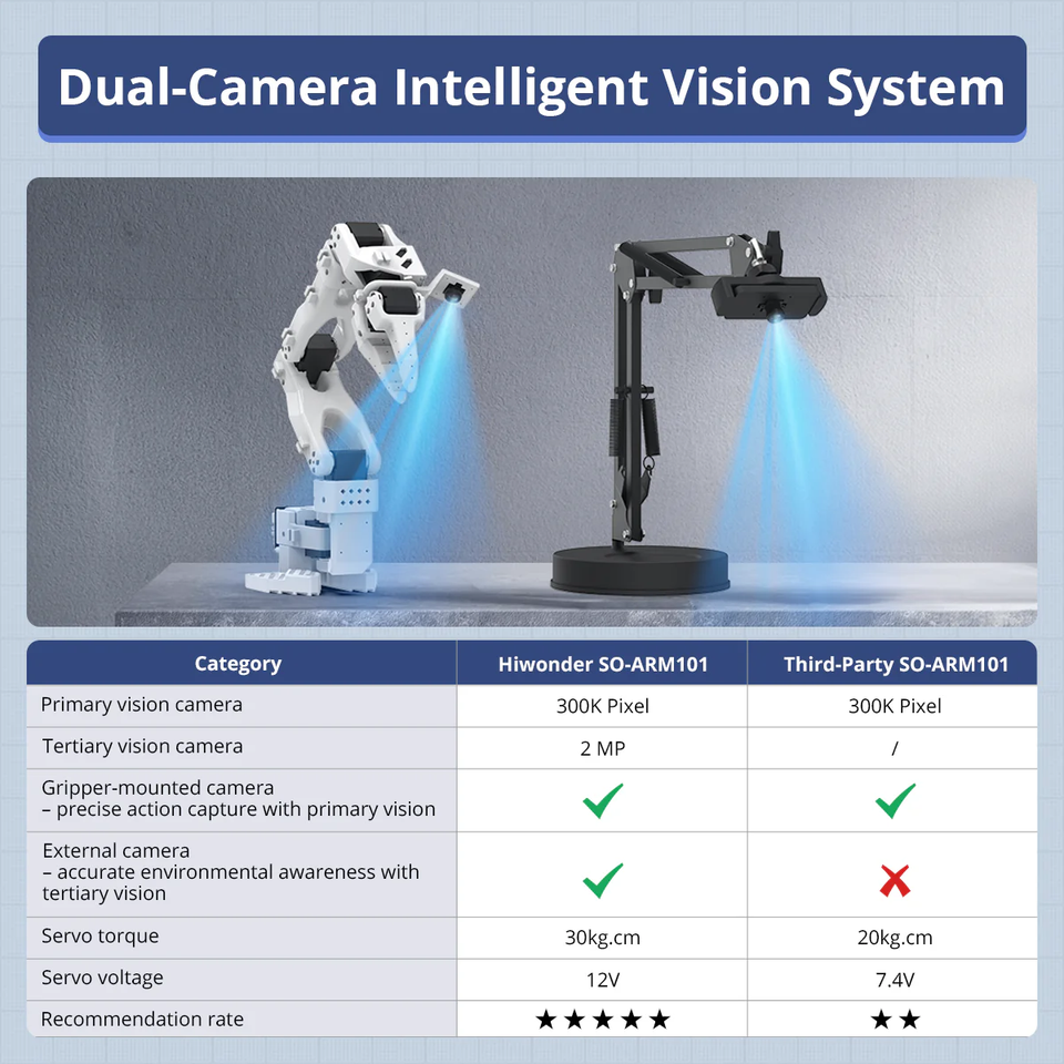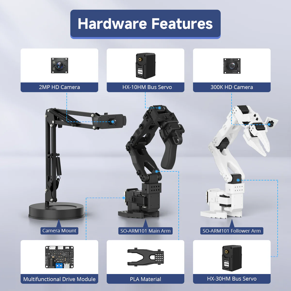 Bras robotique à 6 axes Hiwonder LeRobot SO-ARM101 Open-Source avec vision et reconnaissance IA pour la programmation d'intelligence incarnée