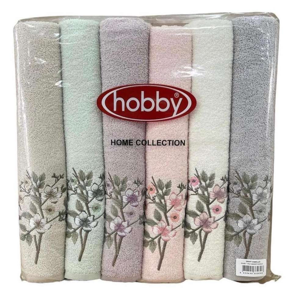 Hobby 50x85cm Lot de 12 serviettes en coton Camelia brodées confortables et durables pour un usage quotidien