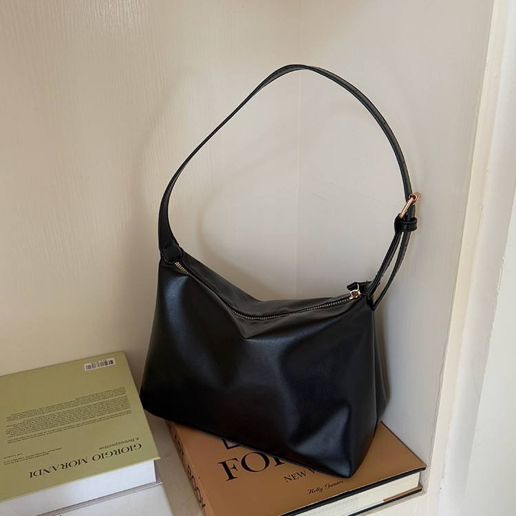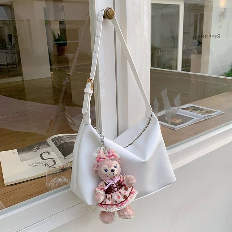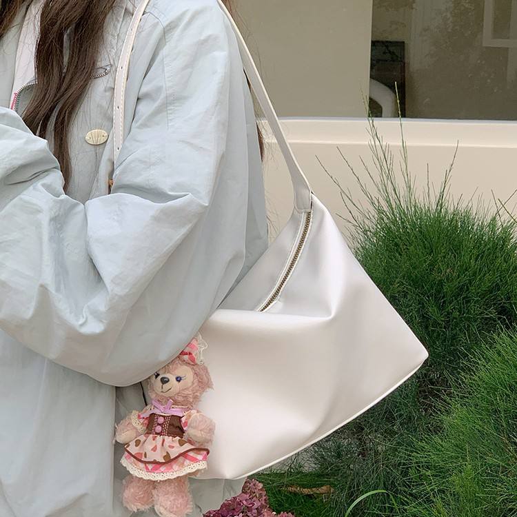 Sac Hobo Coréen Simple à Porter à l'Épaule, Blanc Lait, Fermeture Éclair, pour Tenues Quotidiennes, Sac Bandoulière Femme