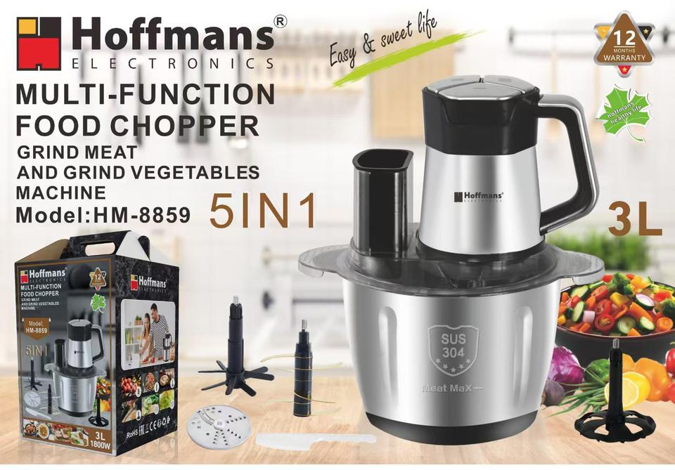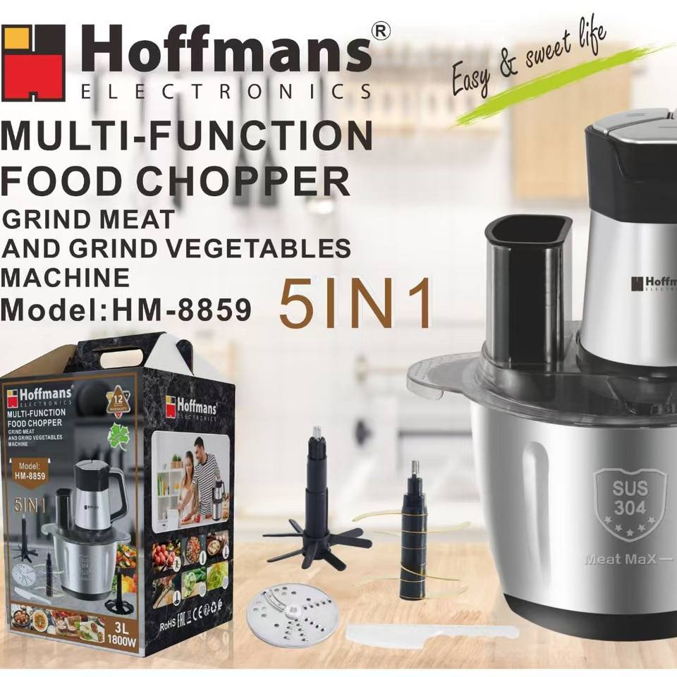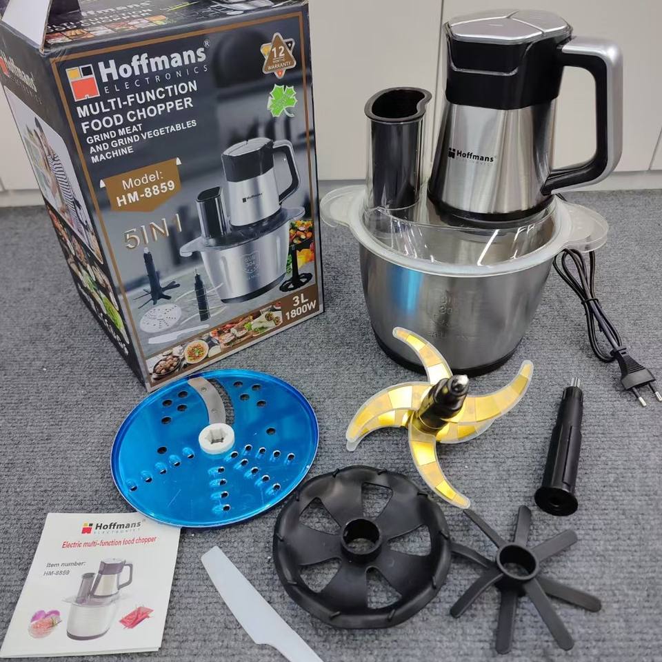Hachoir à viande électrique Hoffmans au design moderne, 1200W, bol en acier inoxydable de 3L, 3 boutons de vitesse, hachage efficace pour le Nigéria