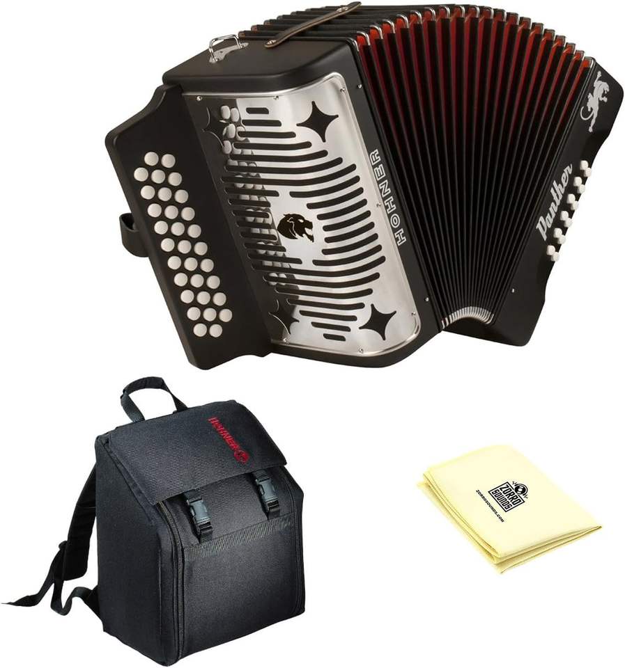 Hohner 3100GB Panther Diatonic Button Accordion in Black with accordion case and Cloth