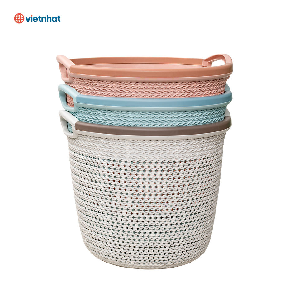 Panier de rangement Hokori 5132 de style tissé, organisateur en plastique durable avec un design tissé et des poignées pratiques