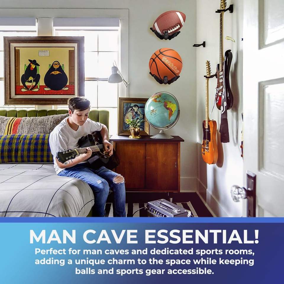 Supports muraux pour ballons de sport Hold My Ball pour main gauche/droite, étagères d'exposition en résine noire polie pour basket-ball, volley-ball