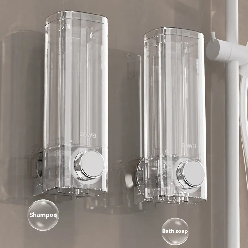 Distributeur de savon mural carré en plastique sans perçage pour gel douche et shampoing, fixation par ventouse, forme carrée