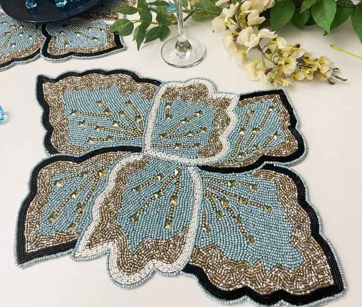 Napperon rond brodé à la main avec des perles de verre, motif papillon, pour hôtel, restaurant, mariage, décoration de table