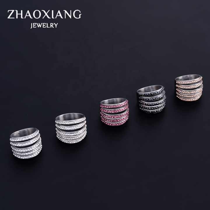 Bagues creuses multicouches en cristal rouge, orange, noir et blanc pour femmes, bijoux fantaisie, bagues Iced Out, cadeaux