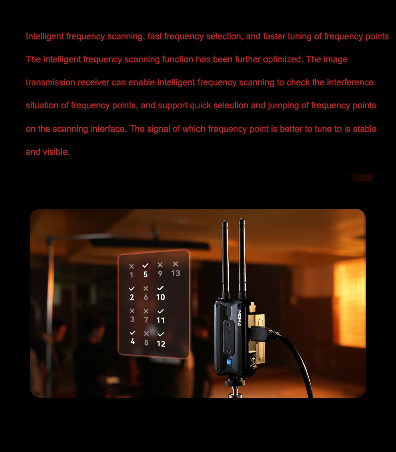 Récepteur Hollyland Pyro S Émetteur sans fil Smart Channel Scan Récepteur de flux en direct