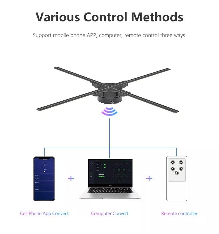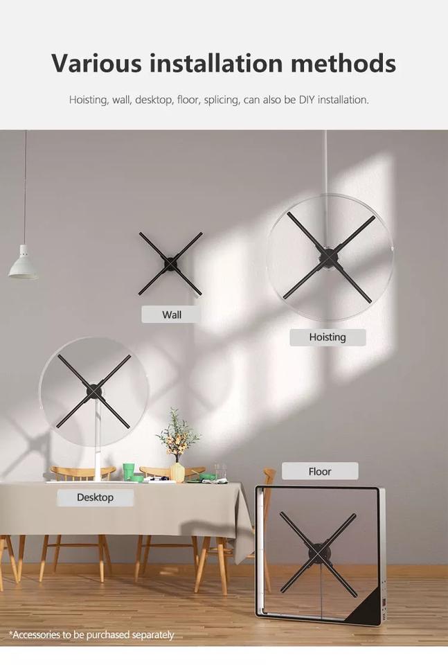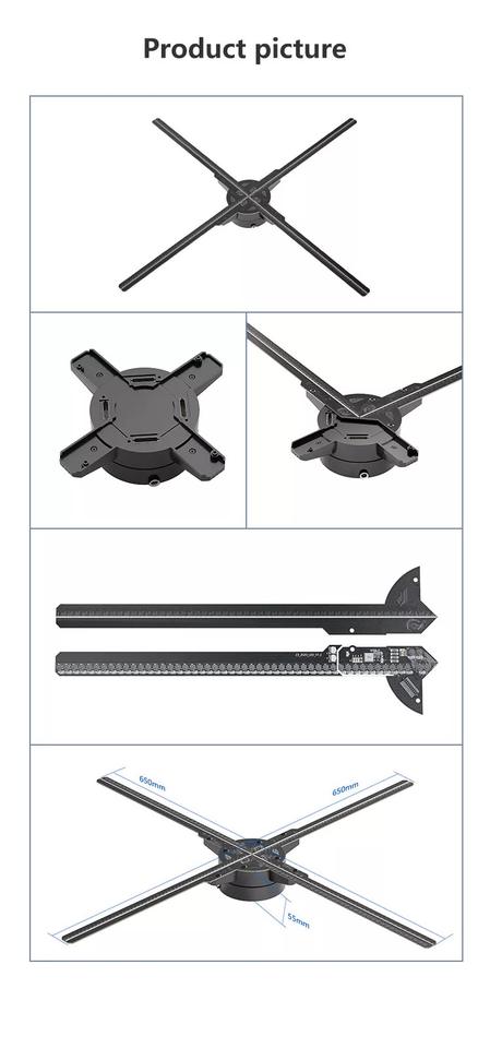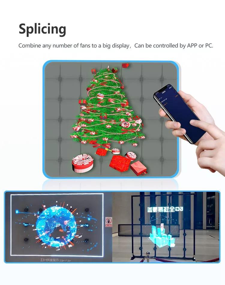 Projecteur holographique, affichage holographique 3D, ventilateur LED publicitaire 3D holographique 65 cm