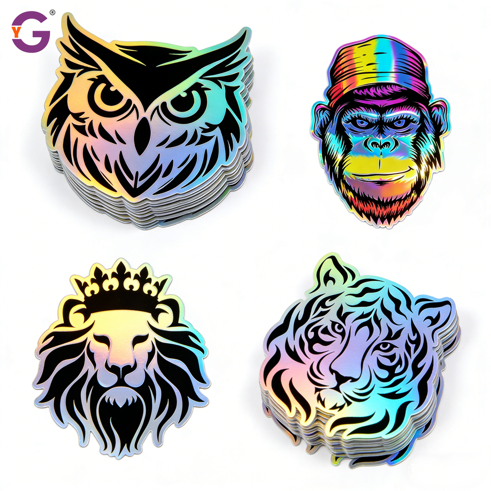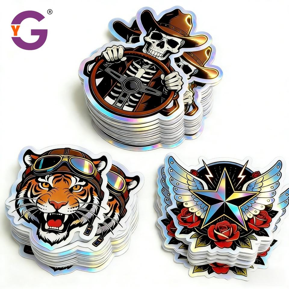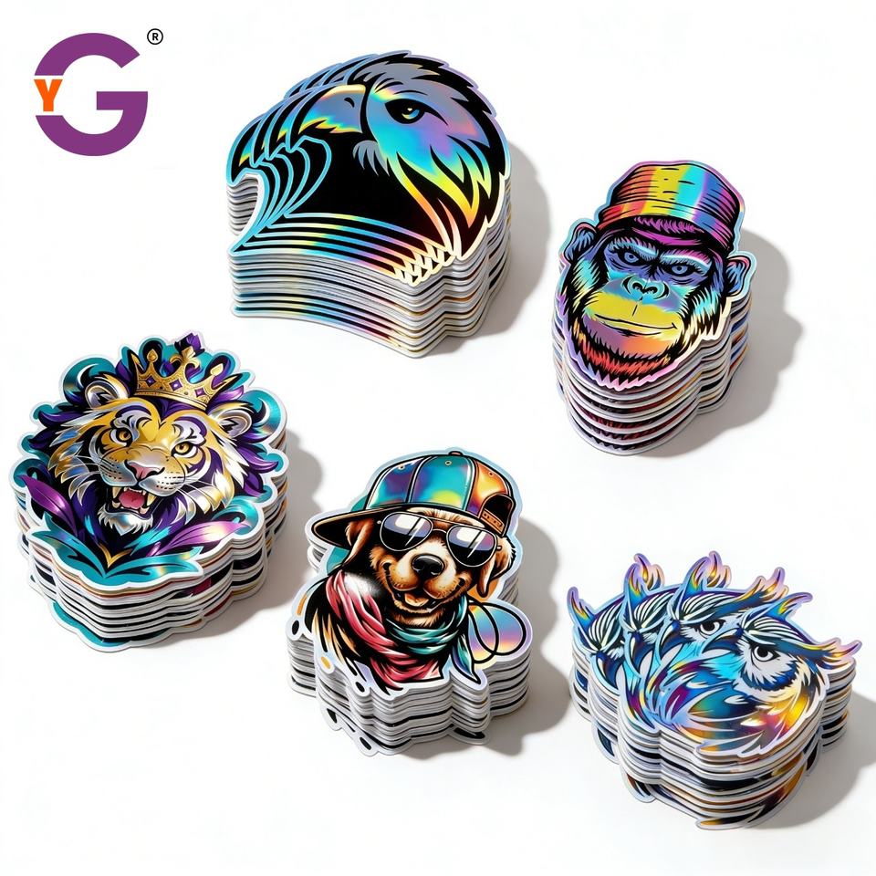 Autocollants holographiques personnalisés avec logo, autocollants adhésifs imperméables pour la décoration d'ordinateurs portables, autocollants découpés holographiques imprimés