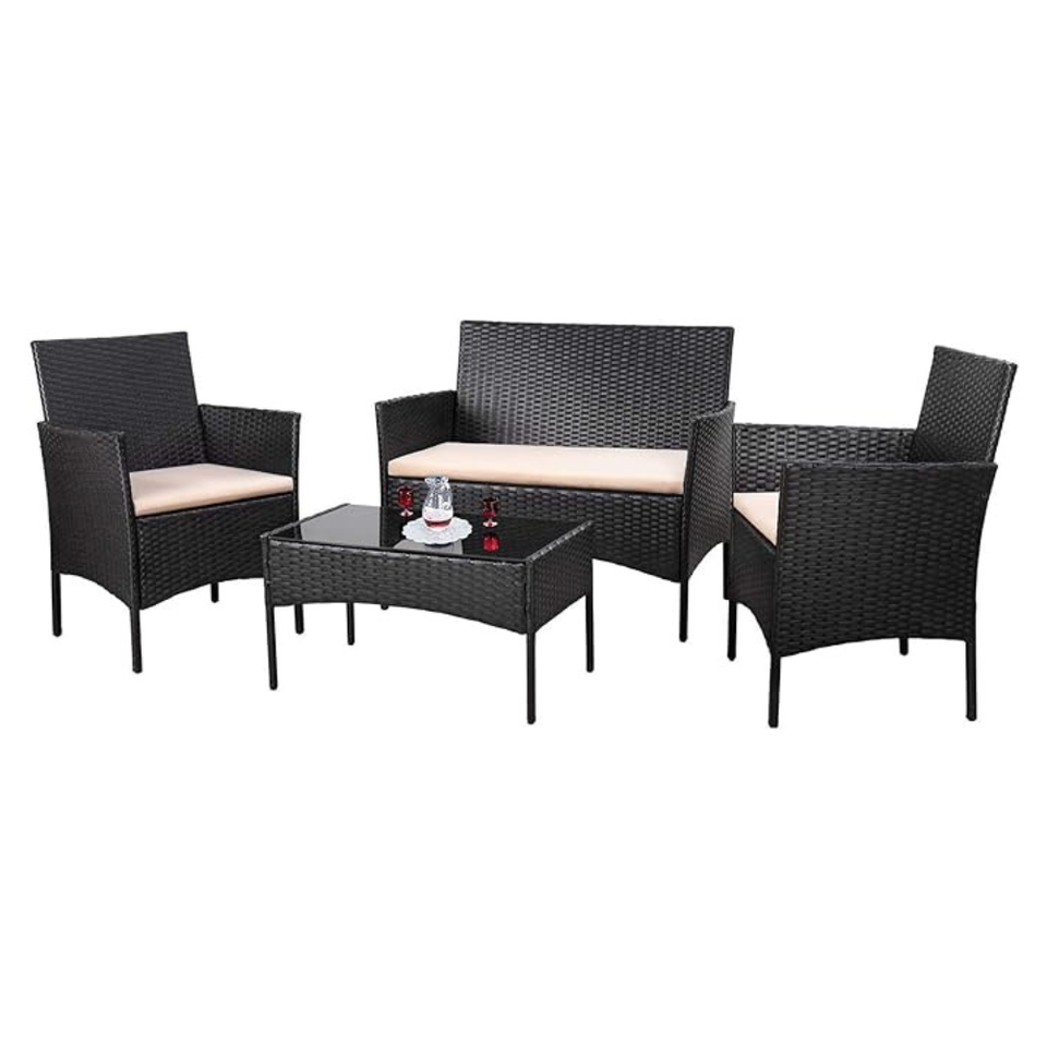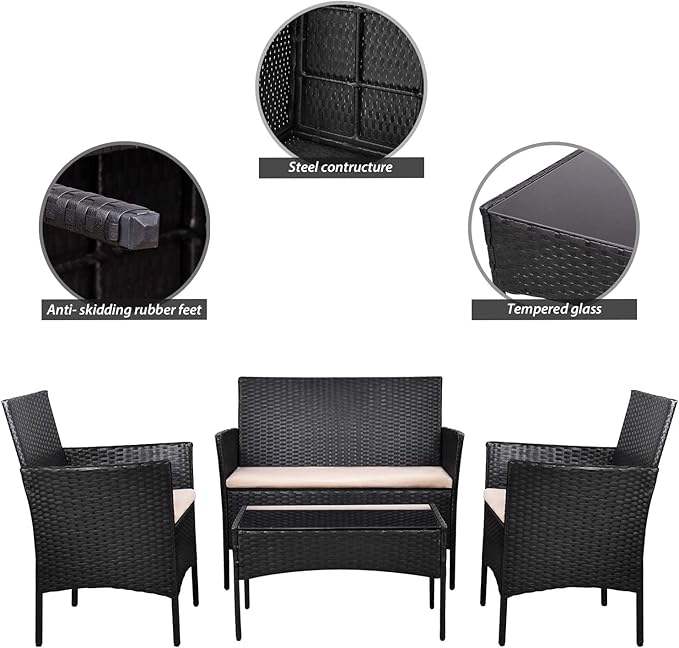 Ensemble de canapés de patio Homall 4 pièces en rotin PE, meubles d'extérieur rembourrés pour jardin et balcon