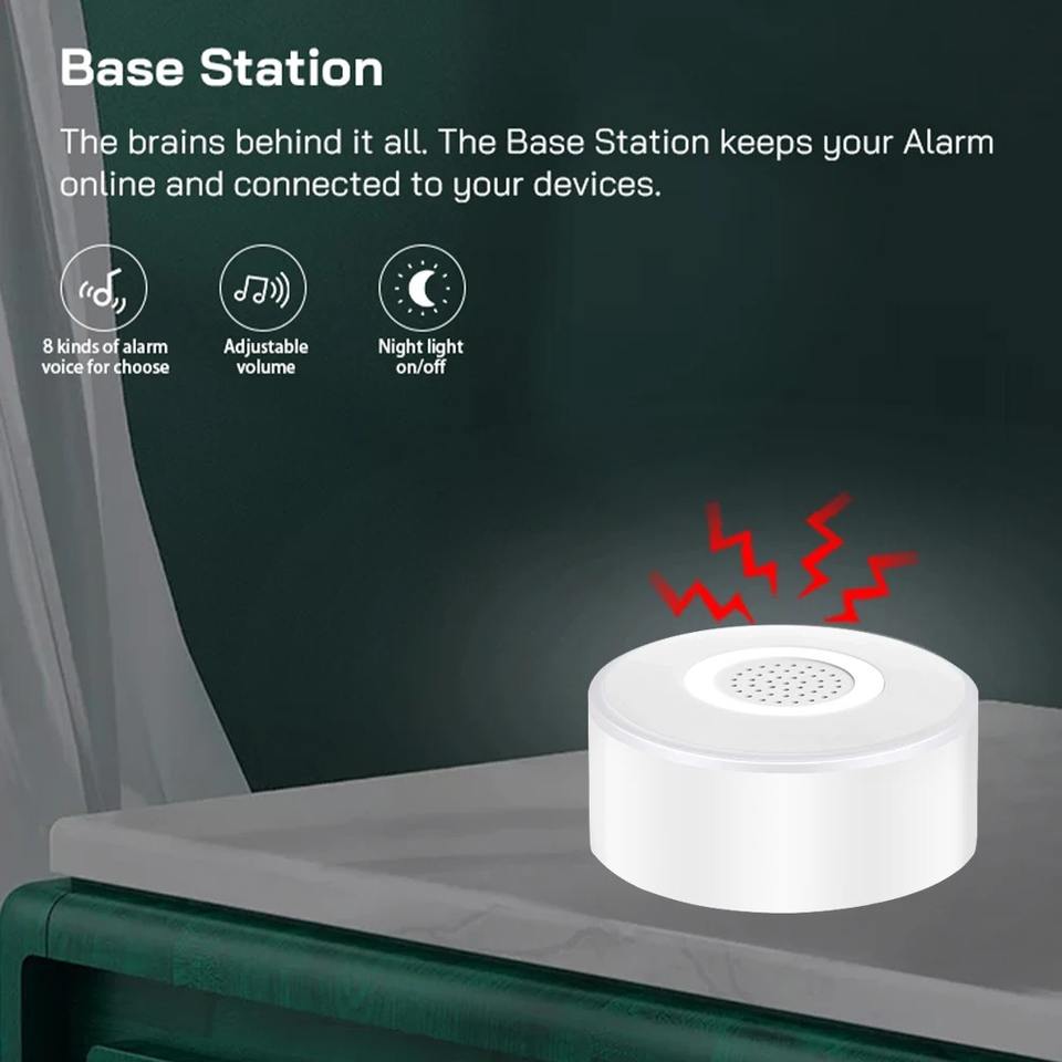Caractéristique:Fonction sos, Capteur de mouvement PIR, Télécommande app, Installation facile, Portable, Durable, Alarme sonore