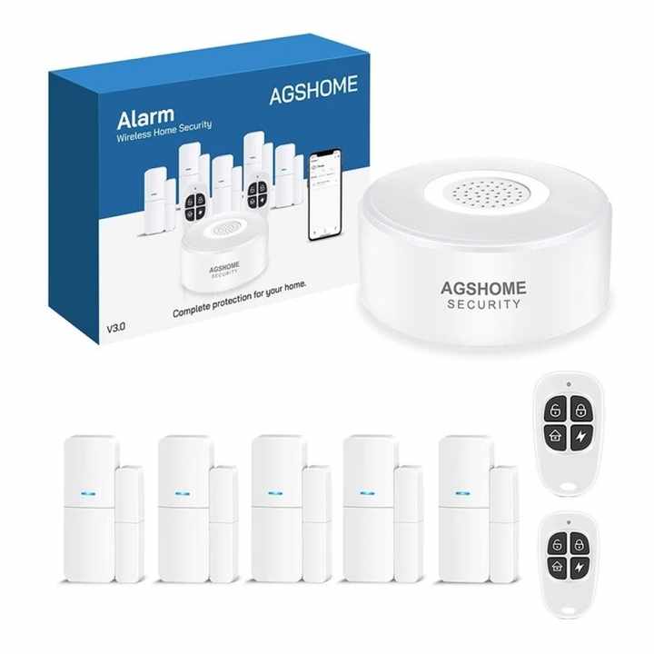 Système d'Alarme Domiciliaire Portable avec Capteurs de Porte et Fenêtre, Kit d'Alarme Sans Fil WiFi Anti-Intrusion avec Fonction SOS et Alerte par Application Téléphonique