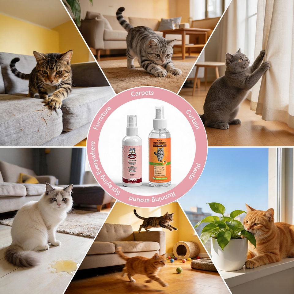 Utilisation:Vaporiser sur la zone pour dissuader le chat de gratter et protéger les objets du foyer.