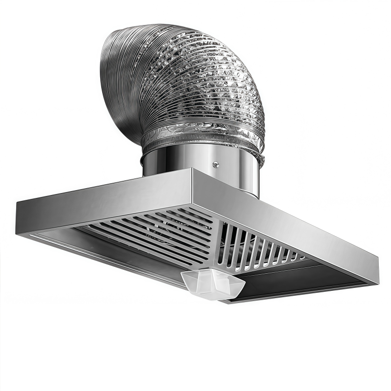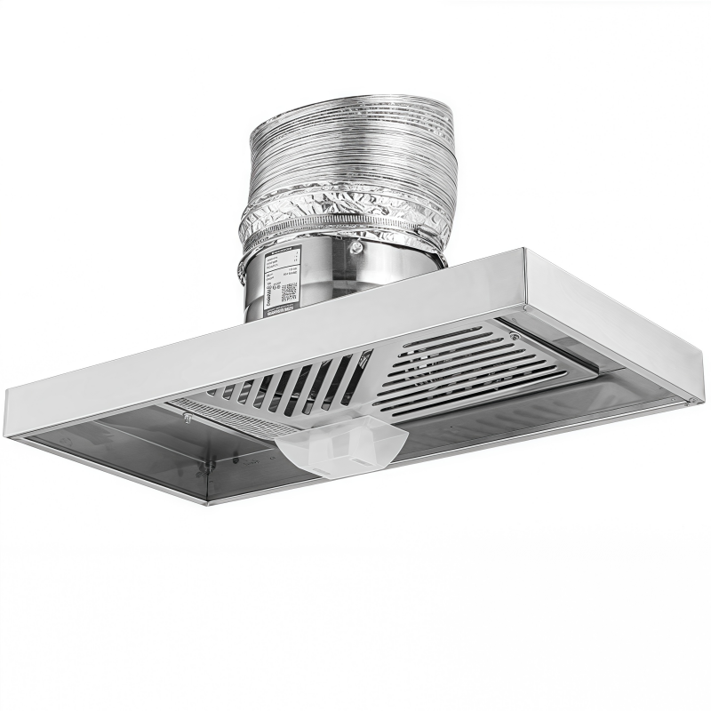 Hotte aspirante double à double aspiration latérale en acier inoxydable pour cuisine professionnelle, usage hôtelier, avec débit d'air élevé