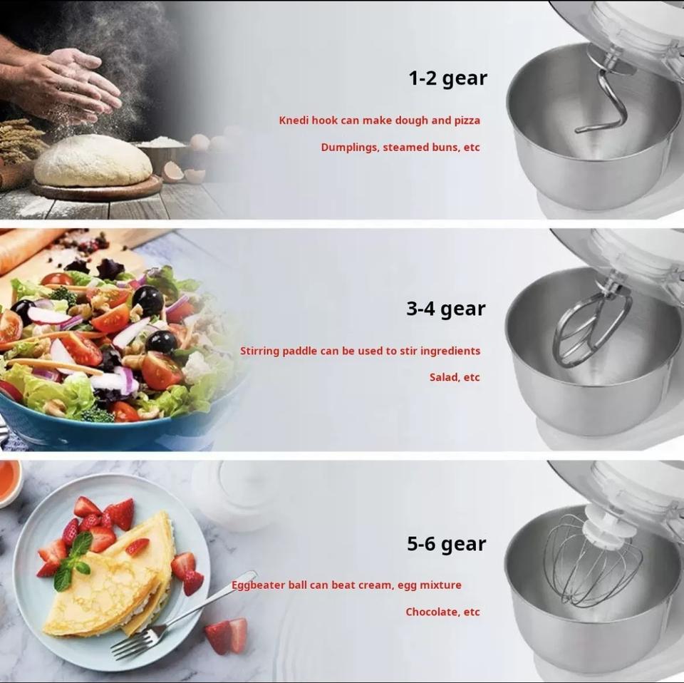 Crochet pétrisseur, Batteur plat, Bol de mélange, Verseur, Fil-fouet