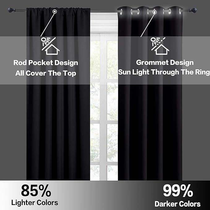 Rideaux occultants isolants pour chambre à coucher, bloquant la lumière solaire, avec cantonnières