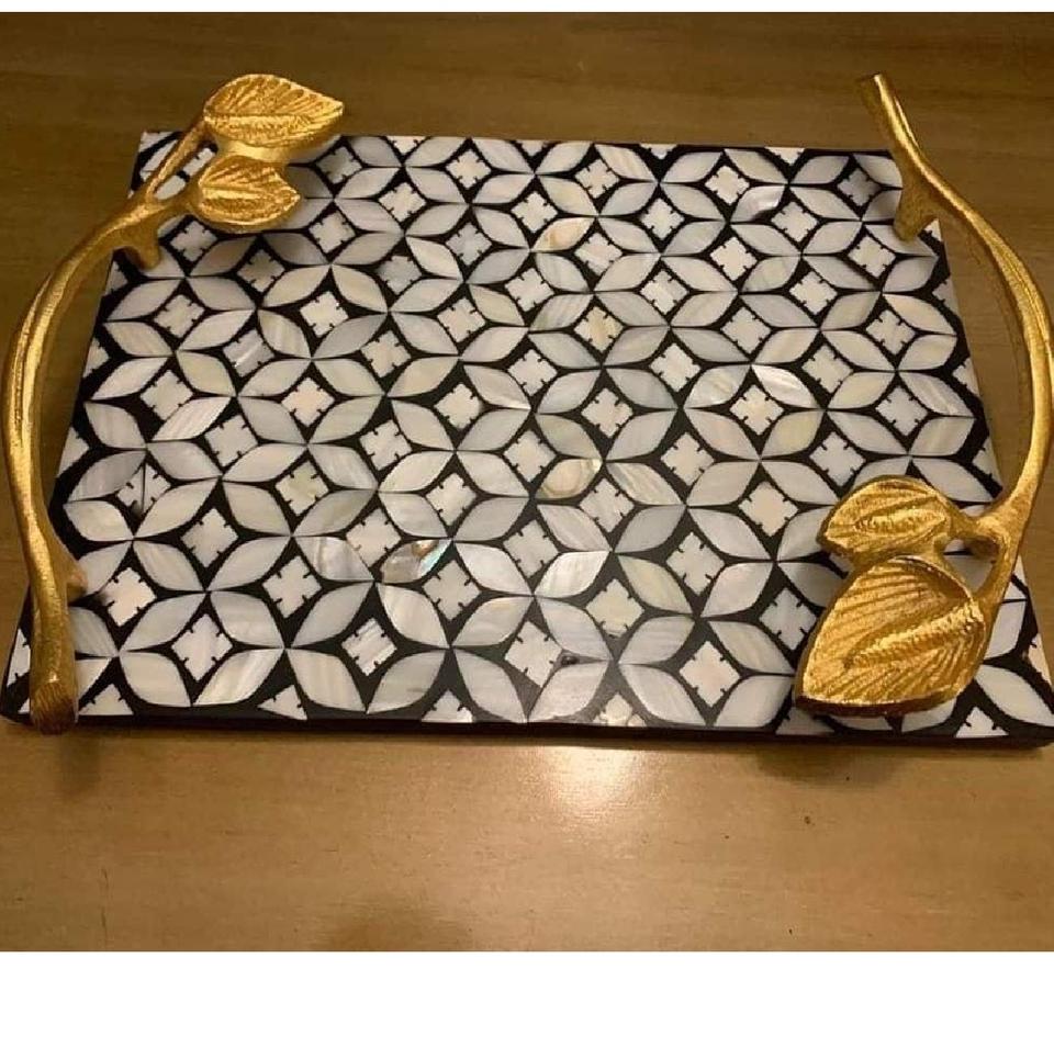 Plateaux décoratifs inspirés du motif classique de la maison Centre de table blanc chic, plateau polyvalent en nacre pour la décoration intérieure moderne