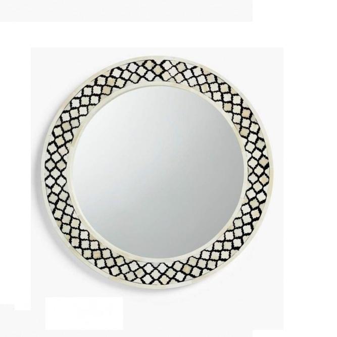 Home Collection Miroir de luxe populaire Cadre Incrustation d'os bleu Miroir mural de forme circulaire Décoration de maison et d'hôtel