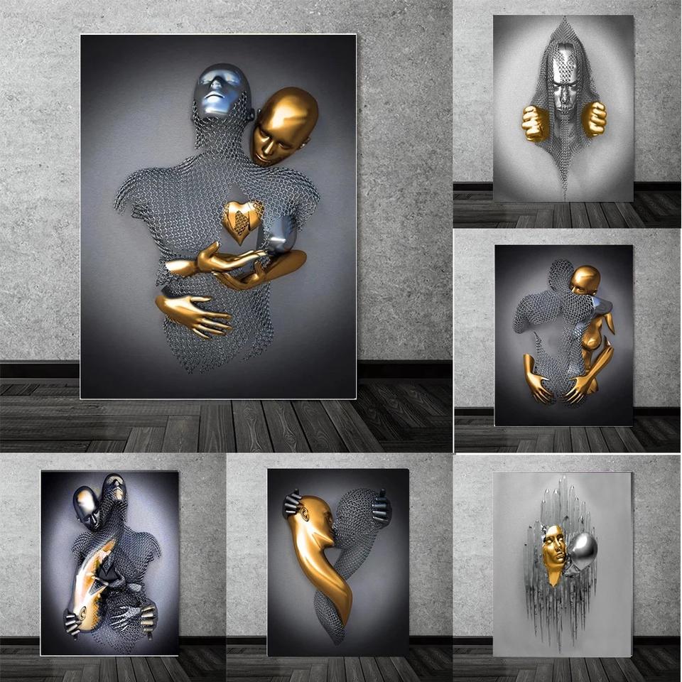 Décoration Murale Abstraite en Métal, Sculpture d'Amoureux Romantiques, Affiche Imprimée Encadrée