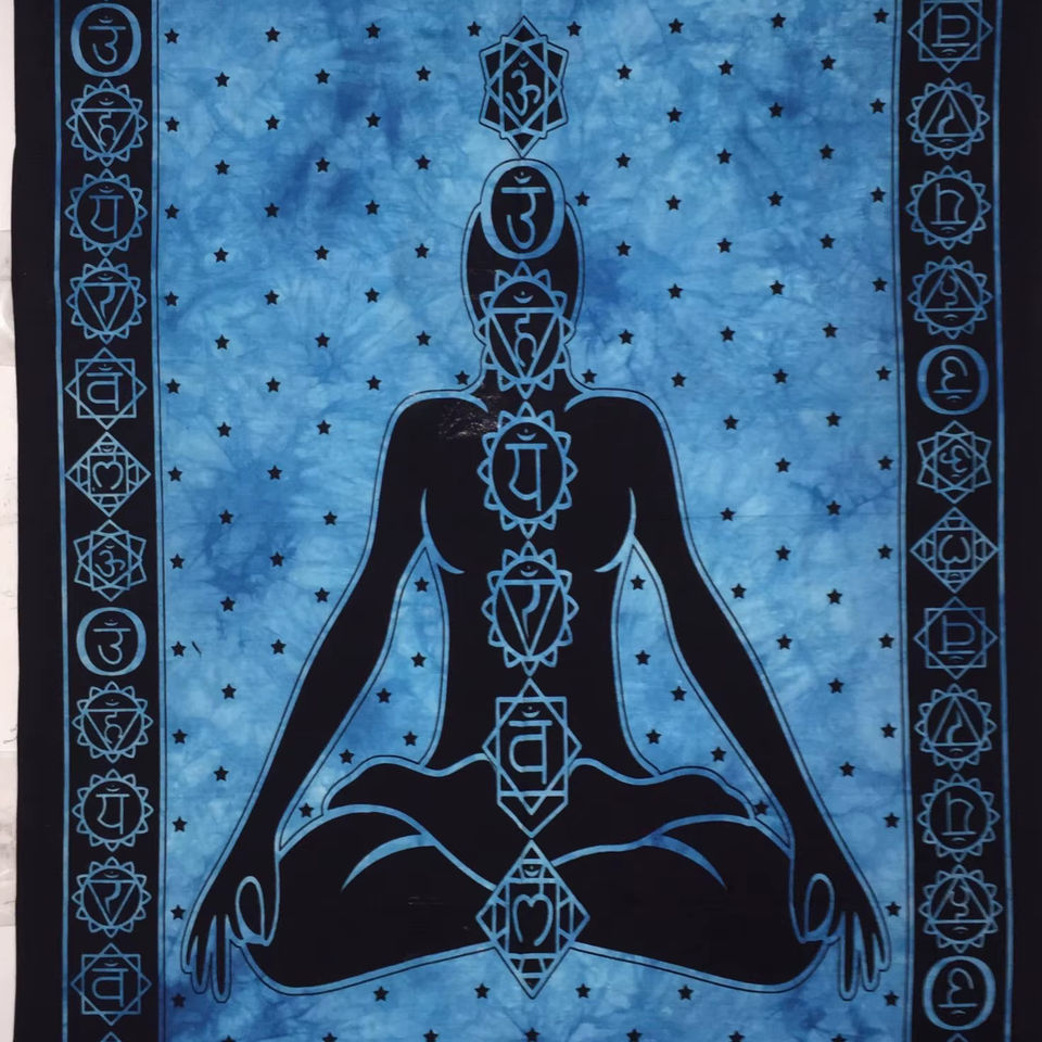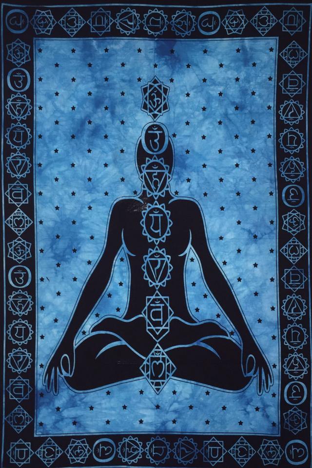 Tapis de yoga Bouddha Sept Chakras en coton, tapisserie murale, petite décoration artisanale pour la maison, plusieurs couleurs, magnifique, par Indian Consigners