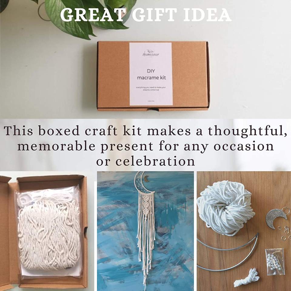 Décoration d'intérieur, bricolage, suspension murale bohème, macramé blanc fait main, kit de fabrication de attrape-rêves lune pour adultes et enfants