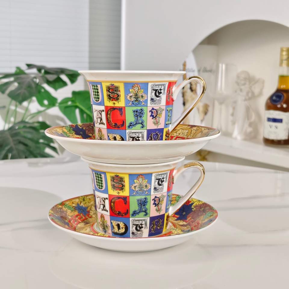 Décoration d'intérieur : Tasse à café de luxe en céramique, style Coupe d'Europe, avec couteau, fourchette et cuillère – Idéal pour la maison, le bureau ou comme cadeau – Artisanat en céramique