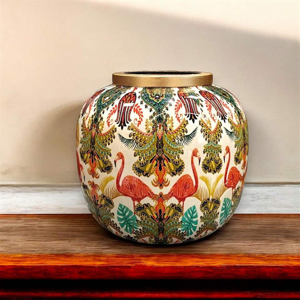 Home Decor Flower Vase for Living Room Golden Color Round Shape Nature Design Decoration Items