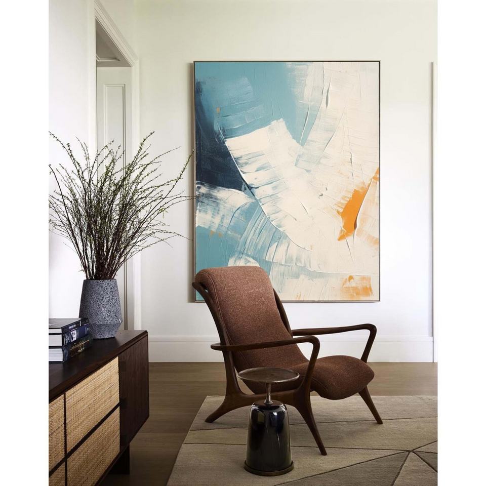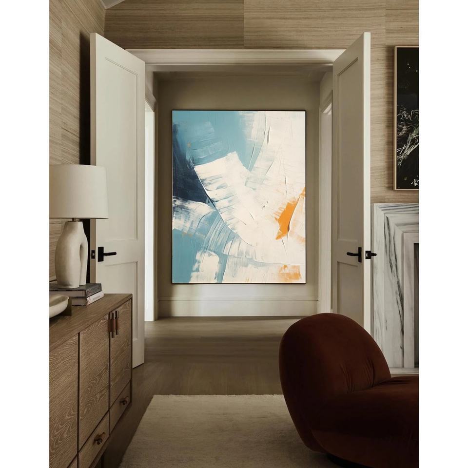 Décoration d'intérieur, peinture murale sur toile abstraite bleue et blanche faite à la main, peinture acrylique originale