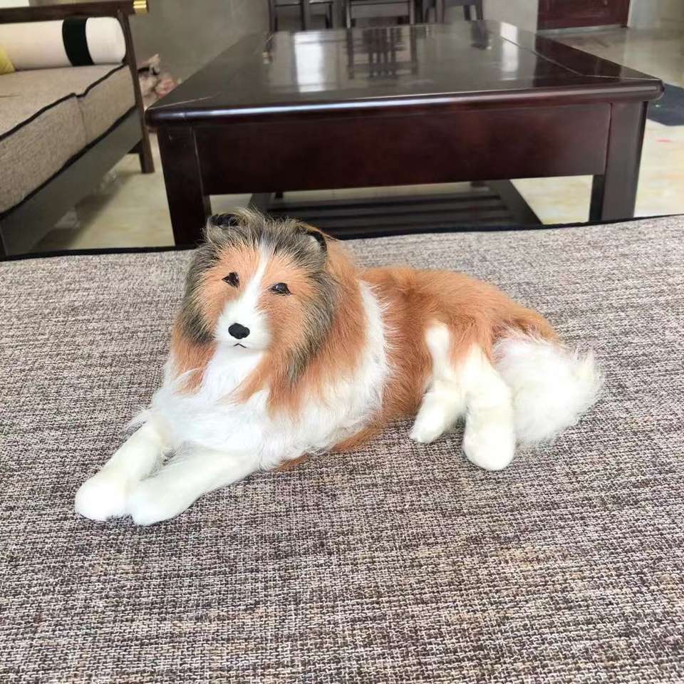 Décoration de la maison Sculpture moderne Animal modèle peluche jouet réaliste Animal bordure Collie