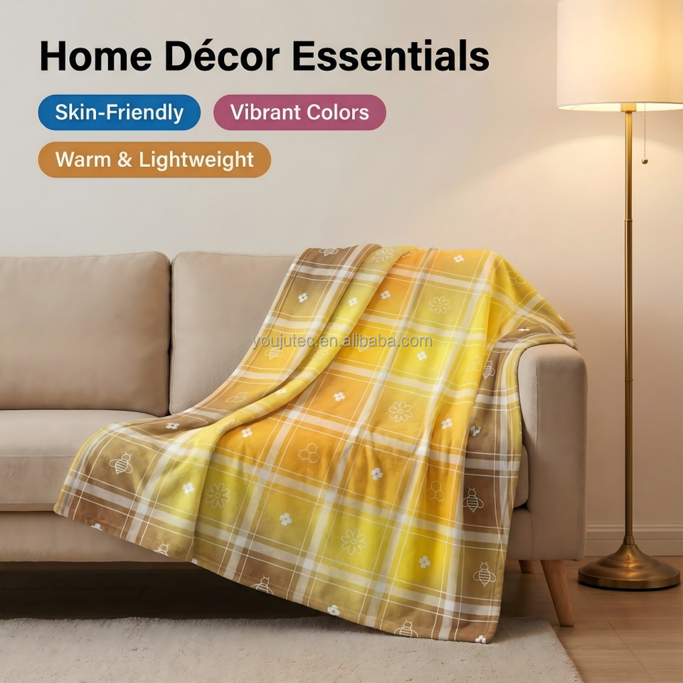 Plaid géométrique jaune confortable et chaud pour la décoration intérieure, 300 g/m², flanelle compressée sous vide, 50x60 pouces, motif personnalisé, utilisation en avion