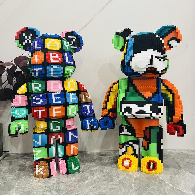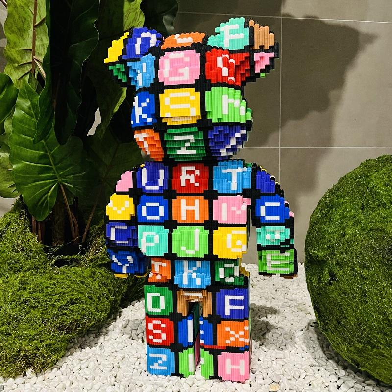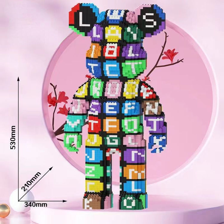 Décoration de la maison, assemblage de 53cm lettre ours modèle 3D Mini brique figurine jouets ours coloré Micro blocs de construction