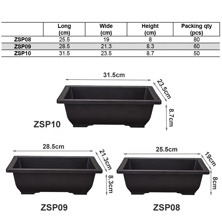 Décoration de maison jardin grande plante rectangulaire en plastique bonsaï fleur argile terre cuite pots plateau