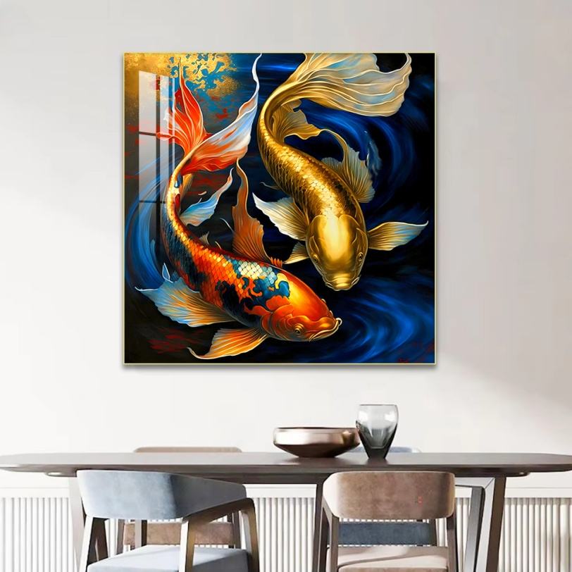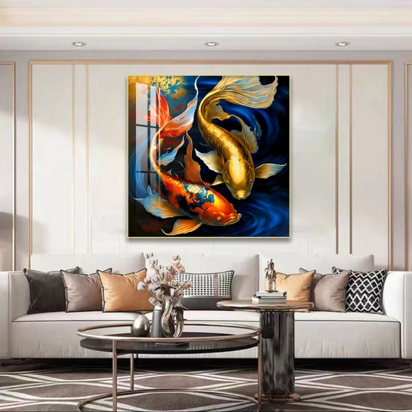 Décoration Murale Islamique HD : Peinture Murale LED de Luxe en Porcelaine Cristalline avec Poissons et Animaux pour Salon