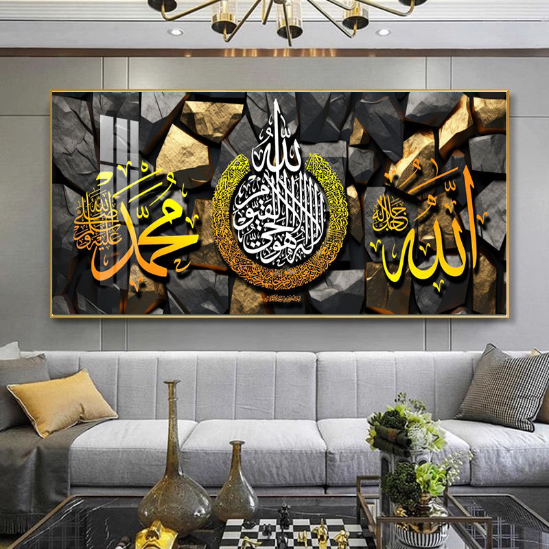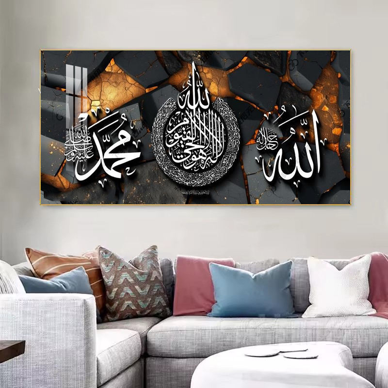 Décoration d'intérieur, calligraphie arabe musulmane, toile en porcelaine cristalline, diamant, image moderne, cadre mural islamique, grande œuvre d'art murale