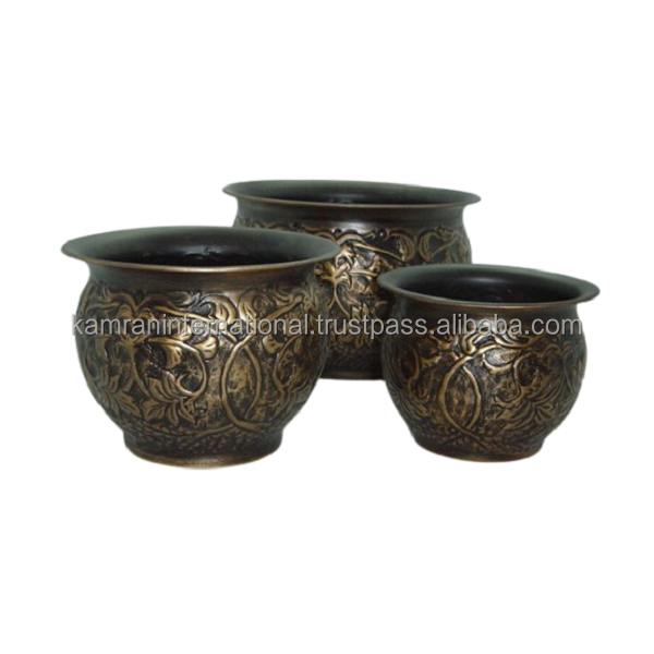 Lot de 3 jardinières antiques de luxe en métal pur 100% décoratives pour la maison, le jardin et le restaurant, accessoires pour plantes florales.