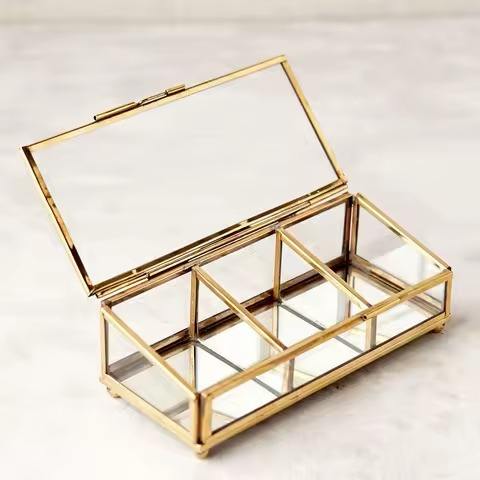 Boîte à bijoux en métal transparente pour la décoration de la maison, boîte à cosmétiques, boîte de rangement, coffret cadeau, boîte de présentation en verre doré