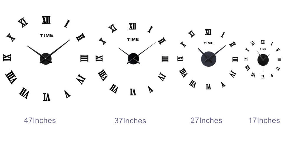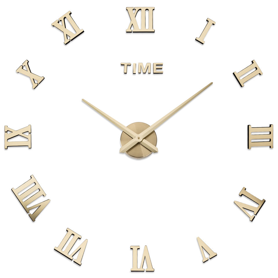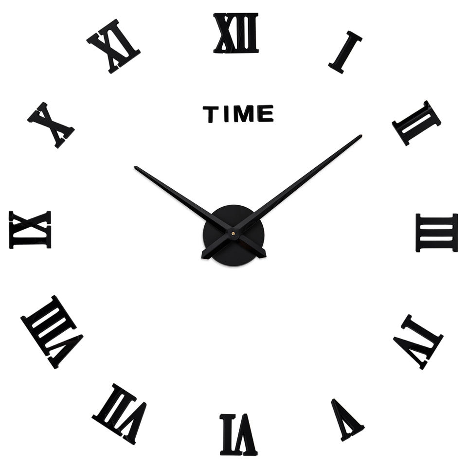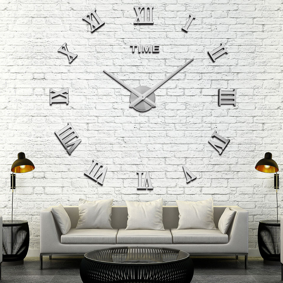 Horloge Murale Géante Décorative Muette Sans Cadre 3D à Chiffres Romains pour Salon