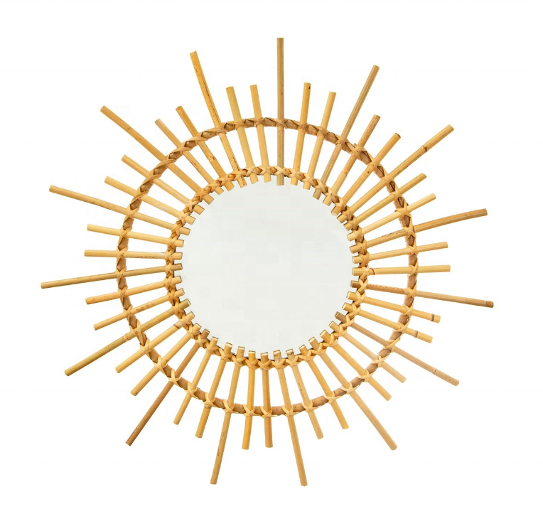 Miroir rond décoratif en rotin naturel pour la décoration du salon, fait à la main au Vietnam