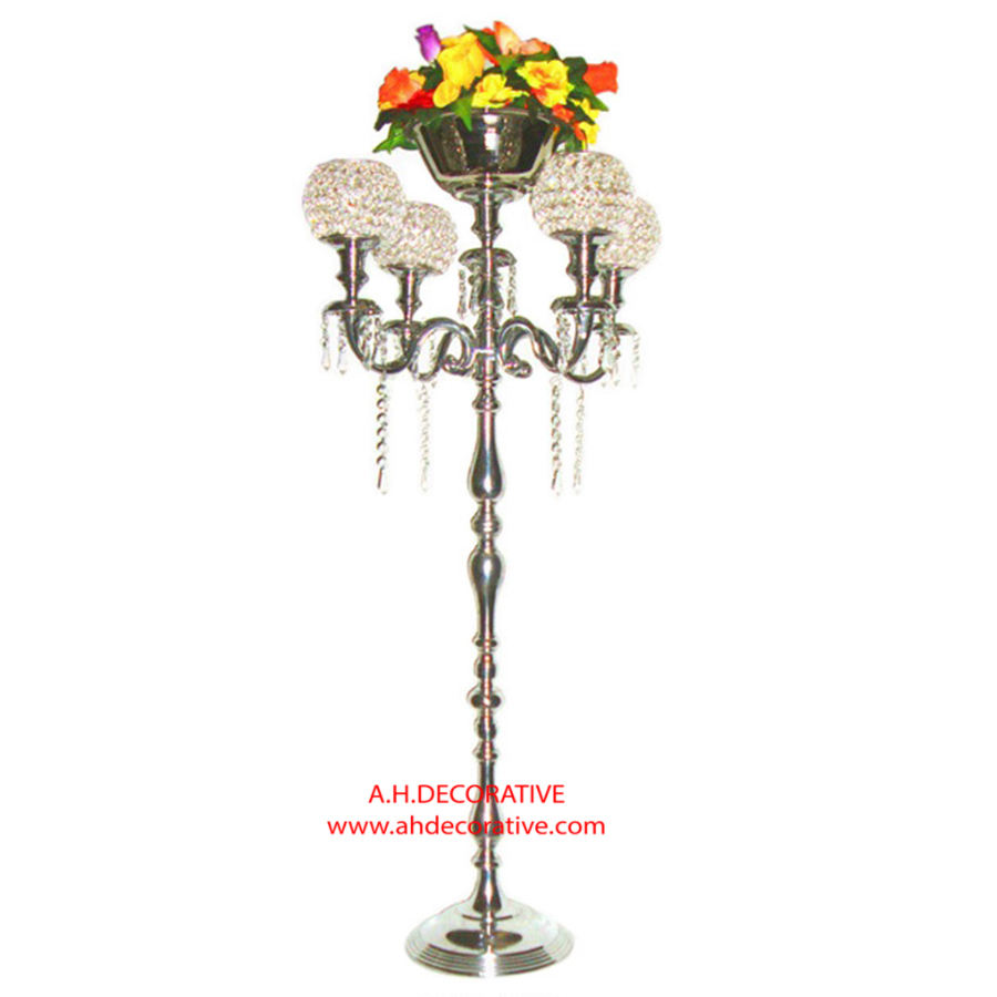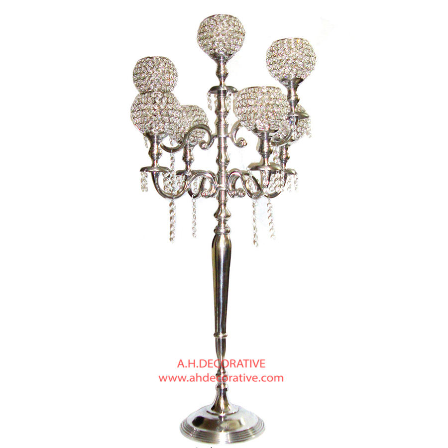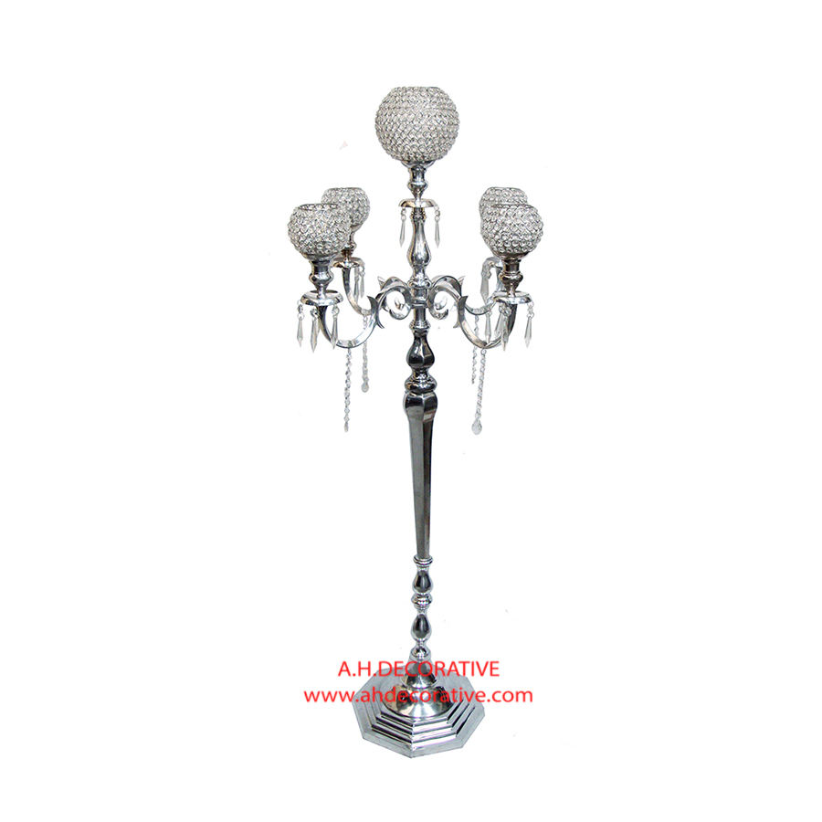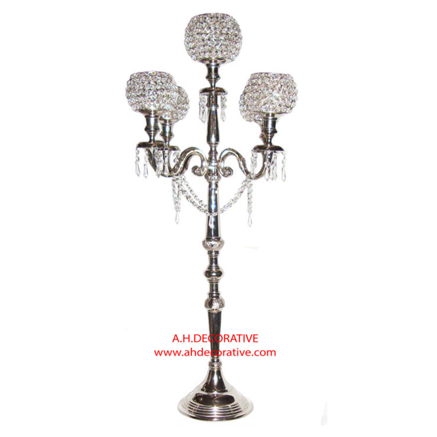 Candélabres nickelés décoratifs pour la maison avec bol à fleurs globe en cristal candélabres votifs faits à la main pour la décoration d'éclairage